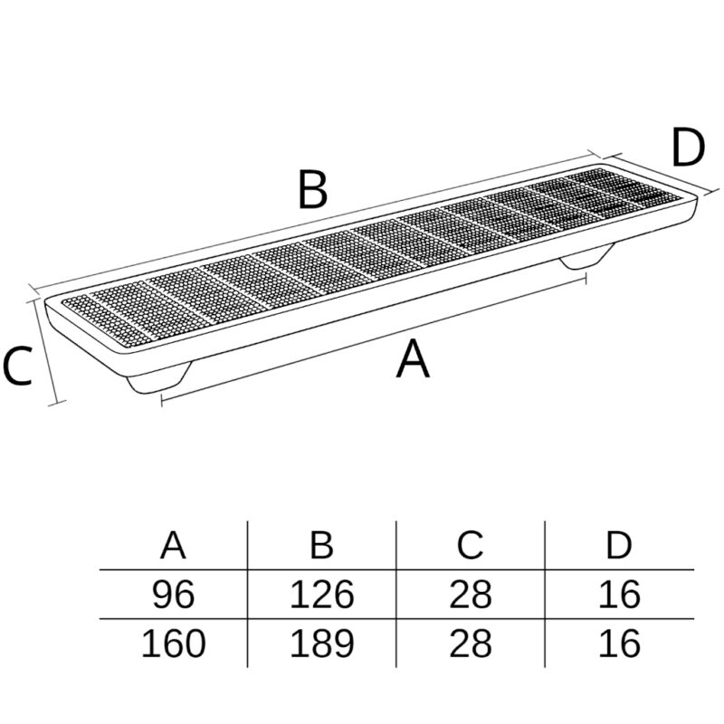| Tamanhos | 96 mm, 160 mm |